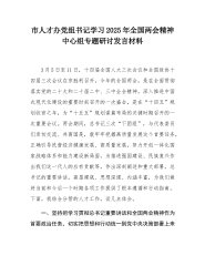 在理论学习中心组专题学习习近平总书记在全国“两会”上的重要讲话精神研讨会上的讲话(1)同志们:在全国“两会”胜利召开之际,习近平总书记亲临江苏代表团,对江苏工作提出“经济大省要挑大梁,为全国发展大局作贡献”的明确要求,这是对江苏发展的高度重视和殷切期望,为我们做好各项工作指明了方向、提供了根本遵循。作为x市人大,我们要深刻领会习近平总书记重要讲话精神,切实把思想和行动统一到党中央决策部署上来,以更高的政治站位、更强的责任担当,为x高质量发展贡献人大力量。下面,围绕本次专题学习,我谈几点体会,与同志们共同交流。一、深刻领会习近平总书记重要讲话精神,提升思想认识习近平总书记的重要讲话,高屋建瓴、思...