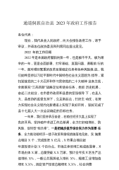 通道侗族自治县2023年政府工作报告各位代表:现在,我代表县人民政府,向大会报告政府工作,请予审议,并请各位政协委员和列席同志提出意见。2022年的工作回顾2022年是本届政府履职的第一年,也是极不平凡、极为艰辛的一年,更是全面部署、打牢基础、直面问题、勇毅前行的一年。面对艰巨繁重的改革发展稳定任务和各种风险挑战,我们始终坚持以习近平新时代中国特色社会主义思想为指导,紧扣迎接党的二十大召开和学习贯彻党的二十大精神这条主线,全面落实“三高四新”战略定位和使命任务,抢抓历史机遇,奋起二次创业,在市委市政府和县委的坚强领导下,在县人大、县政协的监督支持下,立足新起点,打好主动仗,在努力实现社会主义现...