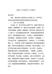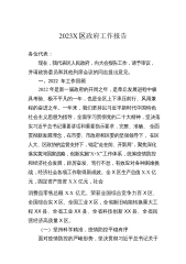 2023X区政府工作报告各位代表:现在,我代表X区人民政府向大会报告工作,请予审议,并请政协委员和列席的同志提出意见。一、2022年政府工作回顾过去一年,在上级党委政府和区委的坚强领导下,区政府和全区人民一道,以习近平新时代中国特色社会主义思想为指导,全面学习贯彻党的二十大精神,坚决应对疫情冲击,有力稳住经济运行,牢牢守住安全底线,用心用情保障民生,较好完成了区十九届人大一次会议确定的年度目标任务。预计(下同)全年完成生产总值X亿元,一般公共预算收入X.X亿元,XX镇和农村居民人均可支配收入分别增长X%和4.X%。全区上下提升首位度、担当抓落实,事争一流、唯旗是夺,我区XX县域经济高质量发展X...