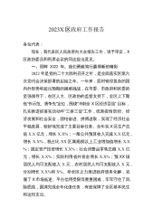 2023X区政府工作报告各位代表:现在,我代表区人民政府,向大会报告工作,请予审议,并请各位政协委员和列席人员提出意见。2022年工作回顾过去一年,面对复杂多变的经济发展形势和疫情汛情旱情等各种超预期风险挑战,在市委、市政府及区委的坚强领导下,在区人大及其常委会和区政协的监督支持下,区政府坚持以习近平新时代中国特色社会主义思想为指导,全面贯彻落实党的十九大和十九届历次全会精神以及党的二十大精神,按照省“X+X+X”工作部署,紧紧围绕市委、市政府确定的“六新”目标〔X〕、“六化”举措〔X〕及赋予武江建设韶关“双化双融”〔X〕X区和高质量发展X区的使命任务,坚持稳中求进工作总基调,统筹疫情防控和经...