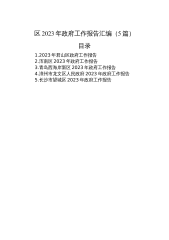 区2023年政府工作报告汇编(5篇)目录1.2023年君山区政府工作报告2.浑南区2023年政府工作报告3.青岛西海岸新区2023年政府工作报告4.漳州市龙文区人民政府2023年政府工作报告5.长沙市望城区2023年政府工作报告2023年君山区政府工作报告各位代表:现在,我代表区人民政府,向大会报告工作,请予审议,并请各位政协委员和其他列席人员提出意见。一、2022年工作回顾2022年是本届政府开局之年,也是君山历史上极具挑战、极不平凡的一年。一年来,面对宏观经济下行、新冠肺炎疫情和历史罕见旱情交织叠加,我们坚持以习近平新时代中国特色社会主义思想为指导,在区委的坚强领导和区人大、区政协的监督支...