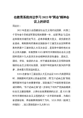 在传达学习2022年全国“两会”精神专题会上的讲话稿提纲发言稿[2]