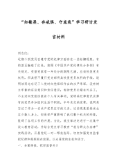 学习朱治国先进事迹交流发言材料近日,省委办公厅印发《关于开展向朱治国同志学习活动的通知》,号召各级党组织和广大党员干部学习榜样、凝聚力量、担当实干。作为组工干部,我们应该从朱治国同志生平事迹反思自己,以朱治国为镜,经常照一照,认真找一找,自觉在对标先进中增强党性修养、提升履职能力。一、胸怀信念志高远,永葆忠诚跟党走。朱治国同志在校期间入党,党龄比工龄还长,无论在什么岗位,无论担任多高“的职务,始终把旗帜鲜明讲政治摆在首位,党让干啥就干”啥,接过来就必须干好。他以勤勤恳恳、兢兢业业的工作态度诠释出对党的无限忠诚、对事业的无限热爱。广大组工干部要学习他信念如磐、对党忠诚的政治品格。把对党忠诚融入血...