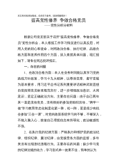 本文系作者原创投稿,仅供学习参考,请勿照搬照抄!提高党性修养争做合格党员——党性分析分材料根据公司党支部关于召开“提高党性修养、争做合格党员”党性分析会,本人根据工作学习情况进行认真反思,对照入党的初心和使命,对照政治合格、执行纪律、品德合格方面和发挥作用四个方面,深入查摆具体问题,现汇报如下,请各位同志批评指正。一、存在的问题1、在政治合格方面:本人在业务时间能认真学习党的路线方针政策,学习十九大精神,以尊崇党章、遵守党规为基本要求,用习近平总书记系列重要讲话精神武装思想自觉按照党员标准规范言行,进一步增强政治意识、大局意识,坚定正确政治方向。主要存在问题:由于自己两年来一直是流动党员,没有...