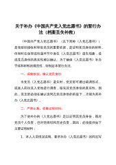 关于补办《中国共产党入党志愿书》的暂行办法(档案丢失补救)