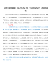 按照关于召开2021年度基层党组织组织生活会和开展民主评议党员的通知要求,我在积极参加集体学习和认真自学的基础上,广泛征求了意见建议、深入开展了谈心谈话,结合个人思想和工作实际,对照党中央和XJP总书记的号召和要求,对照新时代合格共产党员标准,对照入党誓词,对照革命先辈和先进典型“四个对照”,深入查找了自身存在的问题和不足,深刻剖析思想根源,明确整改措施,现将有关情况汇报如下。一、存在的问题(一)在“对照党中央和XJP总书记的号召和要求”方面。做一名纪检监察干部,我能够带头落实党中央和XJP总书记的号召和要求,始终将党的政治建设摆在首位,带头拥护“两个确立”、坚决做到“两个维护”,切实发挥了表...