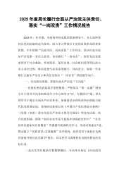2025年度局长履行全面从严治党主体责任、落实“一岗双责”工作情况报告