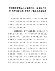 街道党工委书记经验交流材料:凝聚民心民力 深耕创安创稳 奋楫笃行推动高质量发展