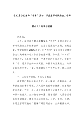 在X县2025年“中考”及初二学业水平考试安全工作部署会议上的讲话材料同志们:今天,我们召开X县2025年“中考”及初二学业水平考试安全工作部署会议,主要目的是统一思想、凝聚力量,贯彻落实好2025年省、州“两考”安全工作会议精神,全力以赴确保中考工作安全有序开展。今年是“十四五”收官之年,也是实行高考、中考改革的开局之年。做好中考工作,是为学生的未来奠基,为教育的发展助力,为社会的稳定尽责。下面,我就做好今年中考工作,提三点意见。一、压实各方责任,夯实安全根基教育部门要扛起牵头责任,精心谋划、统筹安排,从考试组织到考务管理,从人员调配到物资保障,都要做到有条不紊、万无一失。考点学校要担当主体...