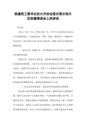 街道党工委书记在六月份垃圾分类示范片区创建推进会上的讲话