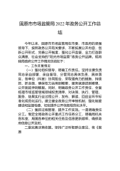 固原市市场监管局2022年政务公开工作总结今年以来,固原市市场监管局在市委、市政府的坚强领导下,按照政务公开有关要求,不断拓展公开内容,创新公开形式,完善公开制度,强化公开监督,全力打造群“”众满意、社会支持的阳光市场监管政务公开品牌。现将我局政府公开工作情况总结如下:一、工作开展情况(一)强化组织领导,明确工作责任。坚持主要负责同志亲自部署、亲自督导,分管同志具体负责、具体落实,各单位(科室)协同配合,采取强有力的措施,持续抓、抓全面,确保权力运用到哪里,服务就跟进到哪里,公开就延伸到哪里。同时,明确政务公开工作责任,全面梳理市场监管领域领域权责清单,对决策、执行、管理、服务、结果实行全过程...