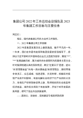 集团公司2022年工作总结会议报告及2023年集团工作目标与主要任务