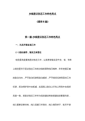 乡镇意识形态工作特色亮点(通用6篇)第一篇:乡镇意识形态工作特色亮点一、扎实开展各项工作(一)强化领导,落实主体责任镇党委高度重视意识形态工作,认真贯彻落实党中央、省、市和上级党委关于意识形态工作的决策部署和指示精神,牢牢把握正确的政治方向,严守政治纪律和政治规矩,严守组织纪律和宣传工作纪律,坚决维护党中央权威,在思想上政治上行动上同党中央保持高度一致。把意识形态工作作为党的建设和政权建设的重要内容,纳入重要议事日程,纳入党建工作责任,纳入领导班子、机关干部目标管理,与经济建设、政治建设、文化建设、社会建设、生态文明建设和党的意识建设紧密结合,一同部署、一同落实、一同建设、一同考核,出现问题严...