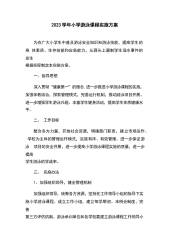 2023学年小学游泳课程实施方案为在广大小学生中普及游泳安全知识和游泳技能,提高学生的身体素质、生存技能和应急能力,从源头上遏制学生溺水事件的发生根据实际制定本实施方案。一、指导思想深入贯彻“健康第一”的理念,进一步推进小学游泳课程的实施,加强体教结合,探索管理模式,完善运行机制,推动游泳项目开展。进一步增强学生游泳兴趣、丰富学生健身活动,提高学生体质健康水平。二、工作目标整合多方力量,开放社会资源,明确部门职责,建立市场运作、学校为主体的管理运作模式,实施有序、有效管理。进一步保证游泳项目的安全开展,进一步提高小学游泳课程实施的质量,进一步提高学生游泳的学成率。三、实施办法1、加强组织领导,...