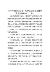 2022年民主生活会、组织生活会相互批评意见实例集锦(77条)