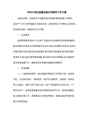 2022单位创建全国文明城市工作方案为落实区委、区政府关于创建全国文明城市整体部署工作要求,促进***工作与文明创建工作的双丰收,推动各项工作不断迈上新台阶,结合我办实际,特制定本工作方案。一、总体要求全面贯彻落实党的十九大和十九届历次全会精神,以高质量创建全国文明城市为目标,以培育和践行社会主义核心价值观为主线,以为民办实事为根本宗旨,落实常态长效要求,着力提升市民素质,着力提升城市管理水平,着力提升城市整体形象,着力提升社会文明程度,全力推进和提升各项创建工作,确保达到文明城市创建的各项要求。二、具体措施(一)加强组织领导。成立创建文明城市工作领导小组,由党组书记、主任担任组长,党组成员、...