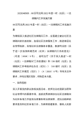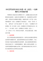 XX区司法局2022年度一村(社区)一法律顾问工作实施方案