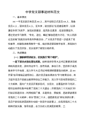 中学党支部事迹材料范文一、基本情况xx一中党支部共有党员xx人,其中在职正式党员xx人,预备党员x人,退休党员x人。近年来,该支部以“以党建促教学,以清廉促作风”为抓手,加强支部建设,提高队伍素质,促进质量提升。通过党史学习教育、“争先、进位、崛起”解放思想大讨论、“向人民群众交好账”实践活动等系列学教活动,广大党员干部进一步提高了党性修养,积极投身教育教学一线,稳步推进课堂教学改革,用实际行动践行了党员宗旨,充分发挥了模范引领作用。二、先进事迹(一)旗帜鲜明讲政治,切实践行“两个维护”。一是下深功夫强化理论武装。始终保持学用A总书记重要讲话精神的高度自觉,及时传达学习,指导实践、推动工作。坚...