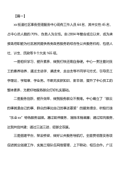 【篇一】xx街道社区事务受理服务中心现有工作人员64名,其中女性45名,占中心总人数的70%,负责人为女性。自2004年整合成立以来,成为承接政府职能为社区居民提供各类政务服务的综合性公共服务机构,包括人社、计生、民政等9个大类165项。一是组织学习,提升素养,做到打铁还需自身硬。中心一贯注重对员工的素养培养,通过主动学、请进来、走出去等不同学习方式,引导员工学理论,学规章,学业务。不断充实新知识、新本领,提升了中心员工的整体素养,为更好地服务群众打好扎实基础。二是服务创新,提升效率,做到服务群众不畏难。中心确立了“群众的事就是自己的事、群众的事比自己的事还要紧”的服务理念,积极打造“乐业xx...