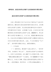 调研报告:基层反映再生资源产业发展面临的问题及建议基层反映再生资源产业发展面临的问题及建议为深入贯彻落实习近平总书记关于新质生产力的系列重要论述,XX坚持以绿色低碳和循环发展为导向,加快建设再生资源产业集群,先后获批国家循环经济示范城市、市级循环经济示范园、全国XX产业园,正加快打造中国XX部最大的高质量再生资源产业园。202XX年,再生资源产业实现产值XX亿元,产业门类、规模居XX部地区前列,并成功举办第XX届中国再生资源产业暨园区发展论坛,加快打造高质量发展范例。当前,产业发展面临“吃不饱”、竞争弱等问题较为突出,亟需协调解决。一、工作成效(一)谋势而动,瞄准新产业抢占新风口。一是科学布局...