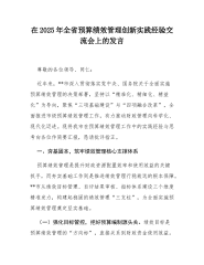 在2025年全省预算绩效管理创新实践经验交流会上的发言