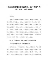 常务副主席在总工会党组理论学习中心组传达河南省信阳市、罗山县10名干部违规吃喝问题研讨会上的交流发言同志们:中央八项规定精神如劲风,吹遍华夏大地,涤荡沉疴积弊,其意义深远、影响重大。近期,河南省信阳市、罗山县10名干部在学习教育期间违规吃喝的问题被公开通报,这一事件如一声惊雷,为我们敲响了警钟。市总工会作为全市各级地方总工会和市级各产业(行业)工会的领导机关,是国家政权的重要社会支柱,在贯彻中央八项规定精神方面肩负着重要使命。我们要深刻汲取教训,以更高的政治站位、更严的工作标准,切实将中央八项规定精神贯彻到工会工作的各个环节。下面,我结合工作实际,谈几点体会。一、以“入木三分”的深刻洞察,剖析...