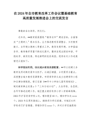 在2024年全市教育改革工作会议暨基础教育高质量发展推进会上的交流发言