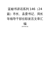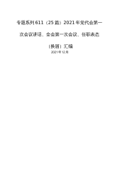 专题系列611(25篇)2021年党代会第一次会议讲话、全会第一次会议、任职表态(换届)汇编2021年12月目录一、省级1.湖南省委书记张庆伟:在省委十二届一次全会上的讲话12.内蒙古自治区委书记石泰峰:在自治区党委十一届一次全会上的讲话53.云南省委书记王宁:在省委第十一次代表大会第三次全体会议(闭幕会)上的讲话10二、市级4.拉萨市委书记严金海:在市委十届第一次全体会议上的讲话125.甘南藏族自治州委书记俞成辉:在州委十三届一次全会上的讲话166.荆门市委书记王祺扬:在市委九届一次全会上的讲话207.陇南市委书记张柯兵:在市委五届一次全体会议上的讲话258.宜昌市委书记王立:在市委七届一次...