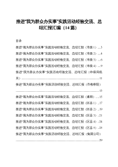 推进“我为群众办实事”实践活动经验交流、总结汇报汇编(14篇)目录“”推进我为群众办实事实践活动经验交流、总结汇报(市级1)....3“”推进我为群众办实事实践活动经验交流、总结汇报(市级2)....4“”推进我为群众办实事实践活动经验交流、总结汇报(市级3)....6“”推进我为群众办实事实践活动经验交流、总结汇报(市级4)....9“”推进我为群众办实事实践活动经验交流、总结汇报(市级局机关).......................................................................................................