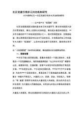 社区党建引领多元共治机制研究大兴调研论文一社区党建引领多元共治机制研究——以**县**乡“院落制”为例社区治理是国家治理的基本单元和关键环节,事关党和国家大政方针贯彻落实,事关人民群众切身利益,事关城乡基层和谐稳定。**乡作为曾经的**个市级深度贫困乡之一,面对贫困程度深、发展基础差、群众思想观念落后内生动力不足的状况,乡党委政府在工作实践中大力推行“院落制”,让农村社区治理下沉有抓手、服务群众有平台,以“小院落管理”为村民自治赋能,推动基层社会治理更加高效。一、探索背景**乡位于城口县西部边陲,是重庆市最后一个通公路的乡,也是最后一个实现通畅的乡,地形地貌是典型的“九山半水半分田”喀斯特山区...