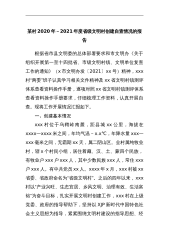 某村2020年-2021年度省级文明村创建自查情况的报告根据省市县文明委的总体部署要求和市文明办《关于组织开展第一至十四批省、市级文明村镇、文明单位复查工作的通知》(x市文明办发〔2021〕xx号)精神,xxx村“两委”班子认真学习相关文件精神及xx省文明村镇测评体系查看资料操作手册,逐项对照xx省文明村镇测评体系查看资料操作手册要求,仔细梳理工作资料,认真开展自查。现将工作开展情况汇报如下。一、创建基本情况xxx村位于乌鞘岭南麓,距县城xx公里,海拔在xxxx—xxxx米之间,年均气温-x.x℃,年降水量xxx—xxx毫米之间,无霜期xx天,属二阴山区。全村属纯牧业村,辖x个村民小组,居住着...