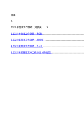 目录1.2021年度民政局帮扶工作总结(市级)22.2021年民政工作总结和下一步工作安排-年度重点工作任务分解、执行及落实情况(镇乡)...................................................................................3.2021年民政所工作总结报告(镇乡).................................................................4.2021年民政主要工作总结及2022年规划............................................