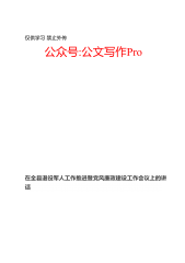 仅供学习禁止外传公众号:公文写作Pro在全县退役军人工作推进暨党风廉政建设工作会议上的讲话公众号:公文写作Pro整理,咨询微信:KingGuKai同志们:这次会议,是机构改革以来,退役军人事务部门新组建之后,县政府决定召开的一次非常重要的会议。刚才,×同志的工作报告,工作安排全面具体,体现了国家省、市级的部署要求,贯彻了全县经济工作会议精神,思路清楚、任务明确、重点突出、措施得力,我完全赞同,请各地、各有关部门认真抓好贯彻落实。下面,我再强调几个方面的意见:一、深化思想认识、强化使命担当,切实开好局起好步组建退役军人事务部,是以习近平同志为核心的党中央立足国防和军队现代化建设需要作出的重大决策...