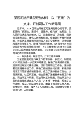 某区司法所典型经验材料:以“五线”为支撑,开创司法工作新局面近年来,XXX区司法所在区司法局的精心指导下,紧紧围绕“抓源头、重调节、强服务、促和谐”的思路,以人民群众满意为突破点,以“五条服务线”为支撑,创新司法服务方法,强化人民调解职能,全面做好矛盾纠纷调解、社区矫正管理和刑满释放人员的安置帮教、法律援助和普法宣传等工作,取得了明显的成效。XX年被XX市司法局评为市级规范化司法所,XX年被中共XX市XX区委,XX区人民政府评为先进单位。XX年被XX区司法局评为司法行政工作先进集体。一、夯实基础,规范程序,打牢工作保障线为全面推进司法行政工作的常态化、长效化、制度化,XXX司法所进一步夯实阵地...