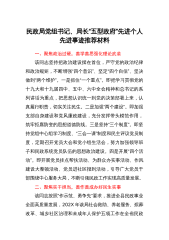 民政局党组书记、局长“五型政府”先进个人先进事迹推荐材料