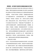 调研报告:提升新时代基层党支部建设效能的有关思考党支部是党在社会基层组织中的战斗堡垒,是党的全部工作和战斗力的基础。重视并加强基层党支部党的建设,是马克思主义政党的鲜明特征,是推动习近平新时代中国特色社会主义思想在基层有效落实的关键举措。《中国共产党章程》总章规定,党的建设必须坚决实现以下五项基本要求:第一,坚持党的基本路线;第二,坚持解放思想,实事求是,与时俱进,求真务实;第三,坚持全心全意为人民服务;第四,坚持民主集中制;第五,坚持从严管党治党。党的十九届六中全会通过的“历史决议”指出:“明确全面从严治党的战略方针,提出新时代党的建设总要求,全面推进党的政治建设、思想建设、组织建设、作风建...