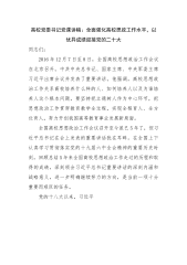 高校党委书记党课讲稿:全面强化高校思政工作水平,以优异成绩迎接党的二十大同志们:2016年12月7日至8日,全国高校思想政治工作会议在北京召开。中共中央总书记、国家主席、中央军委主席习近平出席会议并发表了重要讲话。他强调,高校思想政治工作关系高校培养什么样的人、如何培养人以及为谁培养人这个根本问题。要坚持把立德树人作为中心环节,把思想政治工作贯穿教育教学全过程,实现全程育人、全方位育人,努力开创我国高等教育事业发展新局面。全国高校思想政治工作会议召开至今虽已5年了,但习近平总书记在会上发表的重要讲话犹在耳畔。在全国上下认真学习贯彻落实党的十九届六中全会精神的重要历史时刻,回顾总结5年来全国高校...