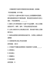 纪律教育学习宣传月党规党纪知识测试题(含答案) 不定项选择题(共50题)1.习近平在十九届中央纪委六次全会上发表重要讲话强调,要巩固拓展党史学习教育成果,更加坚定自觉地牢记初心使命、开创发展新局。_________。A. 要深入学习贯彻党的十九届六中全会精神,持之以恒推进党史学习、教育、宣传,引导全党坚定历史自信B. 让初心使命在内心深处真正扎根,把忠诚于党和人民落到行动上C. 继承弘扬党的光荣传统和优良作风,为党和人民事业赤诚奉献D. 在新的赶考之路上考出好成绩参考答案:ABCD2.《中国共产党廉洁自律准则》规定的四个必须是_______。A. 领导核心B. 政治核心C. 坚强核心D. 基础...