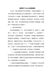 XX学院领导干部试用期个人思想工作述职报告(全文2106字)本人目前分管学院本科教学工作,现将试用期内个人理论学习、负责承担工作情况、学术和业务情况、党风廉政建设情况等汇报如下。一、加强政治理论学习,强化思想引领把政治理论学习作为一项重要政治任务,深入学习党的十九届六中全会、党的XX大会议精神,深刻领悟习近平总书记在××考察时重要讲话精神、习近平总书记考察调研高校、××省时发表的重要讲话、作出的重要指示;认真参加党史学习教育专题民主生活会、巡察整改专题民主生活会、××追责问责案件以案促改专题民主生活会和组织生活会;参加校党委组织部举办的“新提任中层领导人员履职能力提升专题培训班”学习,不断提高...