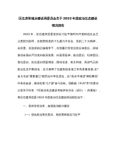 区住房和城乡建设局委员会关于2022年度政治生态建设情况报告