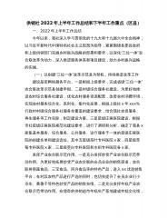 供销社2022年上半年工作总结和下半年工作重点(区县)一、2022年上半年工作总结今年以来,我社深入学习贯彻党的十九大和十九届六中全会精神,以习近平新时代中国特色社会主义思想为指导,紧紧围绕县委县政府和上级供销部门实施乡村振兴战略的部署和要求,以深化“三位一体”农合联改革为动力,深入推进服务体系和项目建设,助力乡村振兴战略的实施。(一)以创建“三位一体”改革示范县为契机,持续推进改革工作建设基层网络服务平台。一是根据上级要求,完成省级“三位一体”农合联改革示范县创建申报。二是村级综合服务社建设。为更好地推进农村综合服务社建设,优化农村服务资源配置,改善农村消费环境,实现农村服务综合化、系列化、...