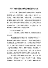 2021年,支部认真贯彻落实中央、省委和市委关于全面从严治党决策部署,深入学习贯彻党的十九大和十九届系列全会精神,以习近平新时代中国特色社会主义思想为指导,牢固树立“四个意识”,提高政治站位,强化责任担当,狠抓工作落实,深入推进党史学习教育,深化党支部标准化建设,抓党建促队建,推进党建XX事业共同进步。一、2021年度工作基本情况(一)加强政治理论学习,深化党员干部理论武装。深入开展党史学习教育,将学习贯彻落实习近平新时代中国特色社会主义思想作为首要政治任务来抓,深入学习建党一百周年大会、党的十九届六中全会精神,结合“四史”学习,制定支部年度政治理论学习计划12期,跟进学习习近平系列讲话,支部...