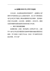 卫生健康局2022年上半年工作总结及下半年工作计划(区县)2022年是党的二十大召开之年,是实施“十四五”规划的关键之年。今年上半年,全县卫生健康工作始终以XJP新时代中国特色社会主义思想为指导,深入贯彻党的十九大和十九届二中、三中、四中、五中、六中全会精神,认真落实党中央、国务院及省市县重大决策部署,坚持一手抓疫情防控,一手抓卫生健康改革发展,阔步新征程,奋力闯创干,以优异的成绩喜迎党的二十大胜利召开。一、上半年工作开展情况(一)落实责任,全面加强卫生健康系统党的xx卫健系统行业党委始终把党的xx工作当做头等大事纳入卫健工作大局中去思考、去谋划、去推进,狠抓组织领导,强化政治担当,严格党内监...
