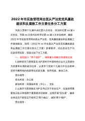 2022年市应急管理局全面从严治党党风廉政建设和反腐败工作主要任务分工方案