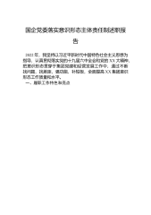 某公司党委书记2022年党建工作述职报告(3824字)2022年,在XX集团公司党组及XX市委市政府的坚强领导下,我坚持以习近平新时代中国特色社会主义思想为指导,带头学习贯彻党的十九届六中全会及中央纪委六次全会、党的二十大精神,带领班子成员紧紧围绕全面推进党的政治建设、思想建设、组织建设、作风建设、纪律建设,制度建设,深入推进反腐败斗争“5+2”党建总体布局,努力推进党建工作与业务相结合,服务和保障了公司“十四五”高质量开局。按照2022年党委书记述评考工作要求,现将本人抓党建工作述职如下。一、推进党建工作取得的主要成果情况本人认真贯彻落实国有企业党建工作会议精神,牢固树立“抓好党建就是最大政...