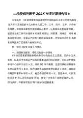 某市委常委、政法委书记、机关党组织书记202X年抓党建述职报告汇编(X篇)目录1..........委常委、政法委书记202X年抓党建述职报告X2.委政法委机关党组织书记202X年抓党建工作述职8某市委常委、政法委书记202X年抓党建述职报告202X年,我某市委政法委在党的十九届六中全会精神和习近平新时代xx特色社会主义思想指引下,围绕省、市委的工作部署,聚焦党建主责主业,切实履行管党治党职责,圆满完成党建各项工作任务。一、主要工作和做法(一)切实履行管党主体责任。一是抓牢两个责任落实。贯彻落实《关于加强党的政治建设的意见》《xx共产党政法工作条例》《政法机关党组织向党委请示报告重大事项规定》...