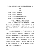 干部人事档案工作情况汇报材料汇编(4篇)目录1.干部人事档案工作情况汇报2.干部人事档案工作情况汇报3.干部人事档案专项审核工作情况汇报4.干部人事档案信息化建设工作汇报干部人事档案工作情况汇报今年以来,我市充分发挥干部人事档案在建设高素质专业化干部队伍中的重要作用,紧扣“全”“真”“严”,进一步提高干部人事档案管理水平,实现了精细化、规范化和标准化。一、在档案材料收集上求“全”。严格执行查漏补全、配合建全、常态收全“三全”措施,坚持“全覆盖”原则,分批次对全市行政编制及副科以上事业编制干部档案查漏补缺,填写档案查缺清单,补齐一份销号一个,已完成第一批次xx家单位干部档案补全工作。强化统筹协调...