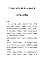 在推进新型农业经营主体健康发展工作会上的讲话同志们:中央、省委、市委农村工作会已相继召开。今天,我们召开**区推进新型农业经营主体健康发展工作会,目的就是要认真贯彻落实党的二十大和上级农村工作会议决策部署,进一步浓厚全区上下重视农业、支持经营主体的氛围,激发相关单位合力,共同推动全区新型农业经营主体健康发展,共同绘就乡村振兴事业新篇章。这里,我想先用三句话谈一下我对**新型农业经营主体的理解。第一句话:新型农业经营主体,是**农业发展的一张金名片。以中药材为代表的**特色农业,已经孕育出全省丘区唯一的省级中药材现代农业园区。今年我们还要继续开展升星工作。第二句话:新型农业经营主体,是**农业发...
