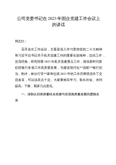 公司党委书记在2023年国企党建工作会议上的讲话同志们:召开这次工作会议,主要是深入学习贯彻党的二十大精神和习近平总书记关于机关党建工作的重要论述精神,总结工作,交流经验,研究部署2023年机关党建重点工作,推动新时代新征程银行各项工作高质量发展,为建设现代化**贡献**银行担当。刚才,林分行等**家单位就2023年的工作开展情况作了交流发言,可以说亮点十足。大家要相互学习、取长补短、共同提高。下面,我讲几点意见。一、深刻认识高质量机关党建与实现高质量发展的逻辑关系习近平总书记高度重视机关党的建设,站在巩固党的执政地位、推进伟大事业的战略高度,作出一系列重要论述和重要指示批示,系统阐述了其特殊...
