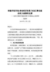积极开拓市场推动经济发展为治江事业提供有力保障和支撑——在长江委拓市场促发展工作座谈会上的讲话马建华2019年12月12日同志们:今天召开座谈会的目的有三,一是分析当前我委经济发展面临的形势,二是谋划今后我委经济发展采取的举措三是探索建立我委企事业单位协作开拓市场的工作机制,以又好又快的经济发展支持高质量的事业发展。下面,我谈四点认识,供大家参考。一、充分肯定取得成绩经济是基础,发展是要务。长江委历来高度重视经济发展工作,在全委广大干部职工的接续奋斗和共同努力下取得了丰硕成果,经济实力不断增强,经济发展态势不断向好。“十二五”以来的8年间(2011—2018年),全委企事业单位资产总额从300...